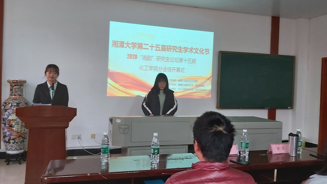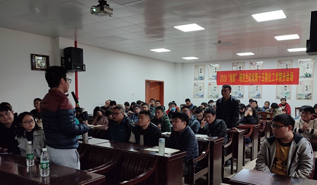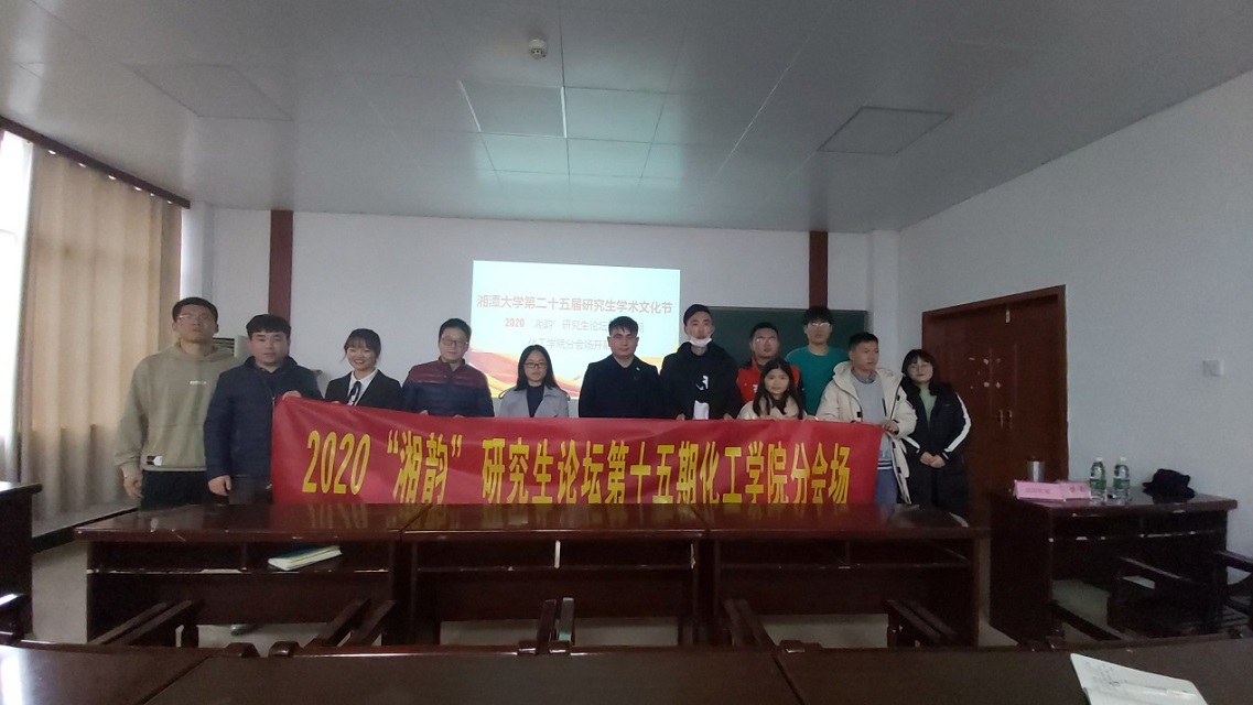 湘潭大学2020年“湘韵”研究生论坛第十五期化工学院专场于2020年12月08日下午两点三十分在化工楼A栋417会议室成功举办,本届论坛主题是:“湘聚群英慧,韵秀化工美”。论坛由湘潭大学研究生会、研究生团委主办,化工学院研究生会、研究生团总支承办。