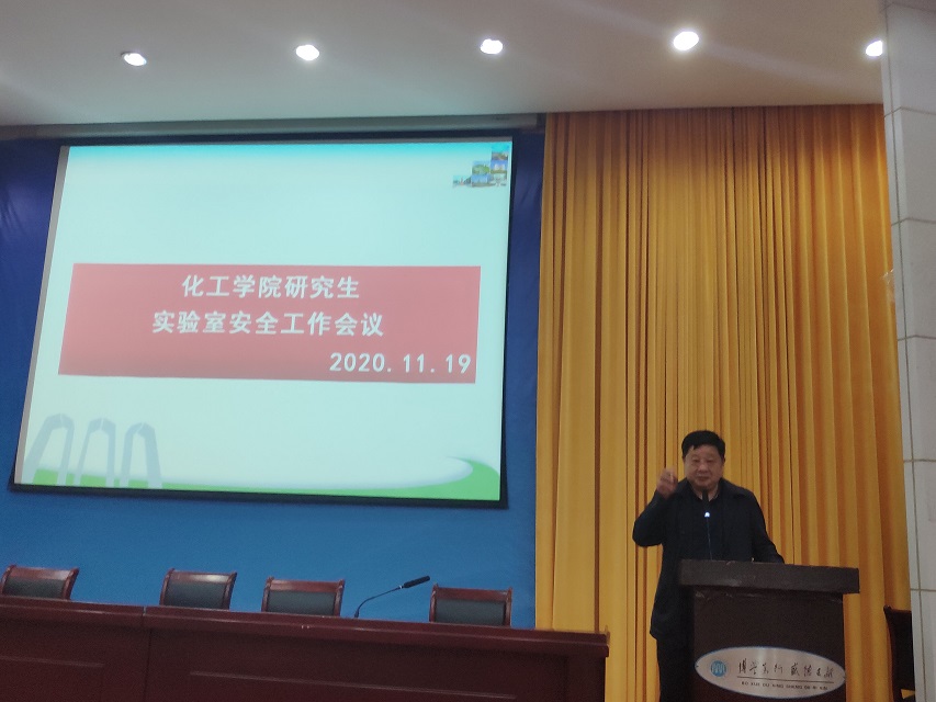 为了深入落实教育部对高校安全工作的战略部署,全面提升学校安全管理水平,层层传导压实安全责任,确保学校安全稳定和师生的生命财产安全。特别是加强实验室安全管理,建立健全各项规章制度是保障教学、科研工作安全、有序开展的必要条件。11月19日上午我校化工学院在逸夫楼第一报告厅成功举行研究生实验室安全工作会议。会议由化工学院党委书陈非文主持,游奎一院长在会仪上传达了实验室安全自查自纠的工作通知以及安全管理条例要求。化工学院全体研究生以及教师代表杨琪老师、雷勇老师出席会议。