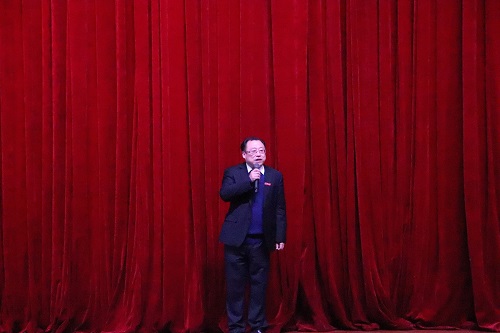 比赛伊始,刘建平副校长以《浏阳河》为开场,活跃现场气氛,点燃同学们的热情。活动现场,参加比赛的同学们热情高涨、气势昂扬,向领导和其他观看表演的同学展现了自己积极向上的精神风貌。刘建平副校长也说道,“2020年是全面攻坚的最后一年,明年是建党一百周年,希望今天晚上的表演都能好好表现、展现风华,祝愿今天晚上的百人大合唱圆满成功。”