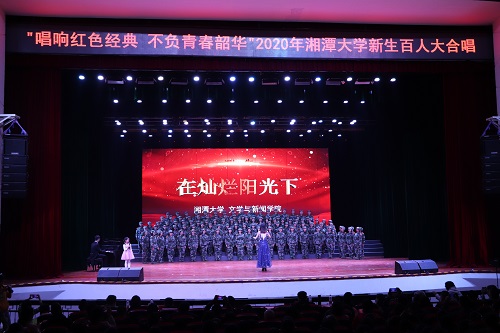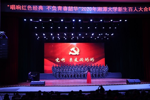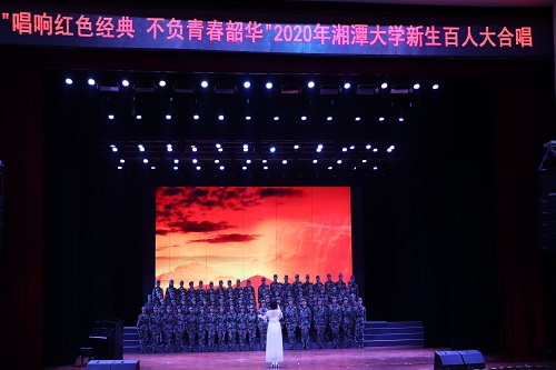 2020年10月7日19时,“唱响红色经典,不负青春韶华”2020年湘潭大学百人大合唱在湘潭大学俱乐部举行。莅临现场的嘉宾有湘潭大学副校长刘建平等,大赛的评委有湖南省音协会员许晖、湘潭子弟中学高级音乐教师邓军、湘潭大学艺术团指导老师彭靓等。