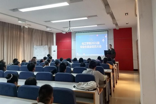 接下来是由化工学院就业服务与外联部冉纯静介绍2021届毕业生就业升学信息统计、毕业生证明材料收集、毕业生获取就业信息的途径以及高等学校毕业生登记表收集等后期的工作安排。