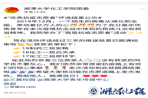 4月30日,经过了三天激烈的投票竞选,最终有三名同学脱颖而出,荣获“优秀抗疫志愿者”称号,获奖名单于英国365集团公司团委官Q公示。至此,英国365集团公司“我是抗疫志愿者”活动圆满结束。