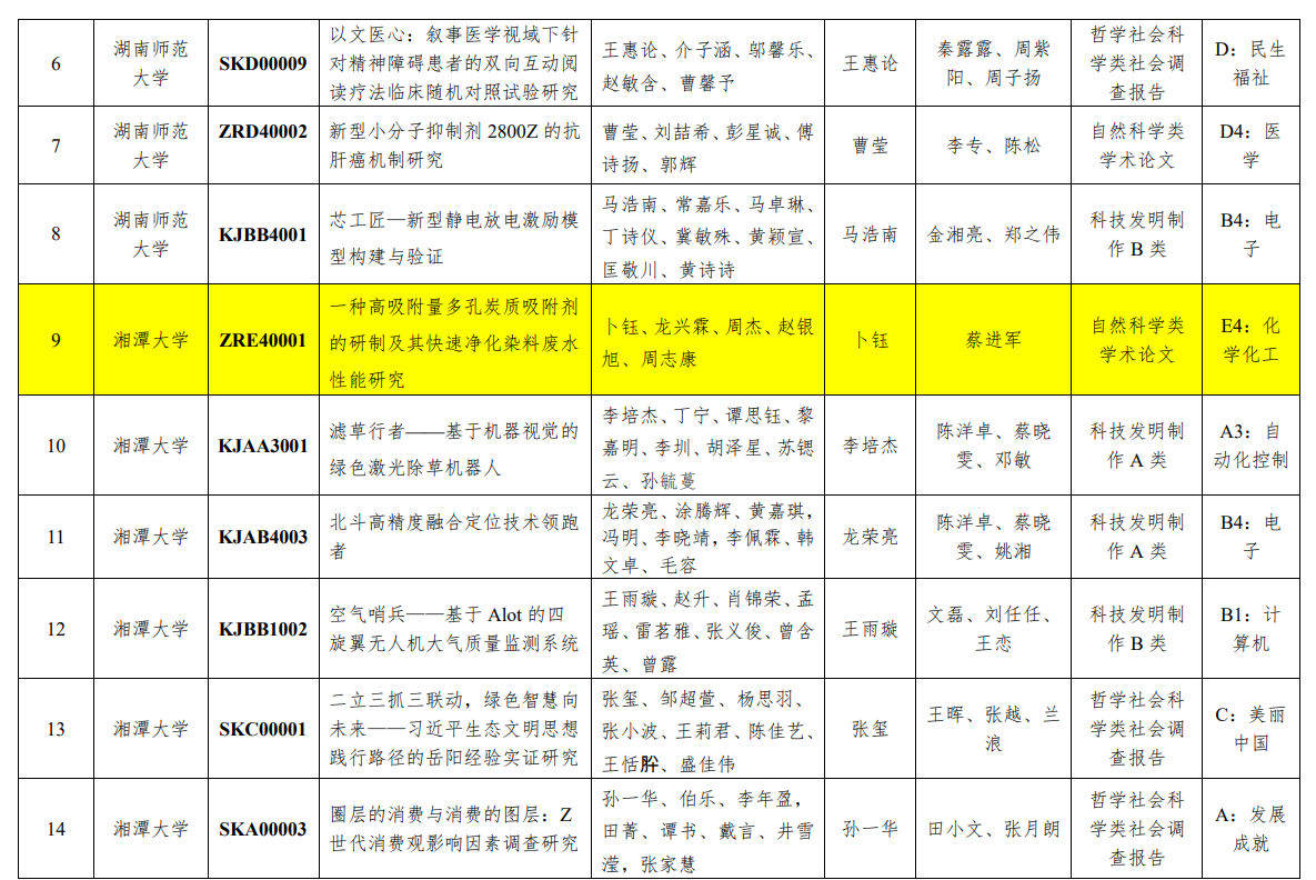 1月学校启动该项目以来,该团队将《ZIF-8 衍生氮掺杂多孔炭吸附剂的制备及对罗丹明 B 吸附性能研究》大学生创新训练项目的实验成果转换,经过校初赛、复赛的答辩评选,经过激烈角逐,在全校自然科学类学术论文类别中获得唯一参加省赛的名额。据悉这也是化工学院代表队首次在全校挑战杯系列赛事选拔中获得参赛名额并最终获得湖南省三等奖,实现了从01的突破。