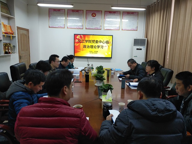 2019年1月8日和11日,化工学院党委在化工大楼201会议室开展了院党委中心组成员的政治理论学习。学院党政领导及党委委员、办公室主任、系主任、教工支部书记及专职组织员等参加了学习。学习由党委书记朱向群同志主持。