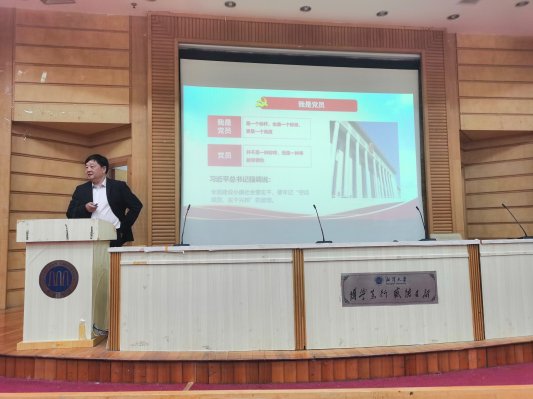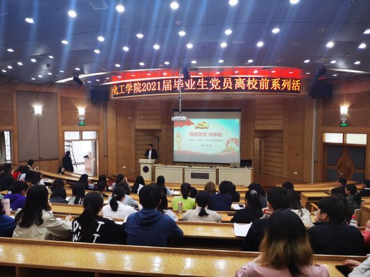 2021年5月21日上午,化工学院全体毕业生党员在图书馆报告厅开展了“我是党员,我奉献”党史学习教育的专题党课学习。党课由院党委书记陈非文讲授,黄益荣老师主持。