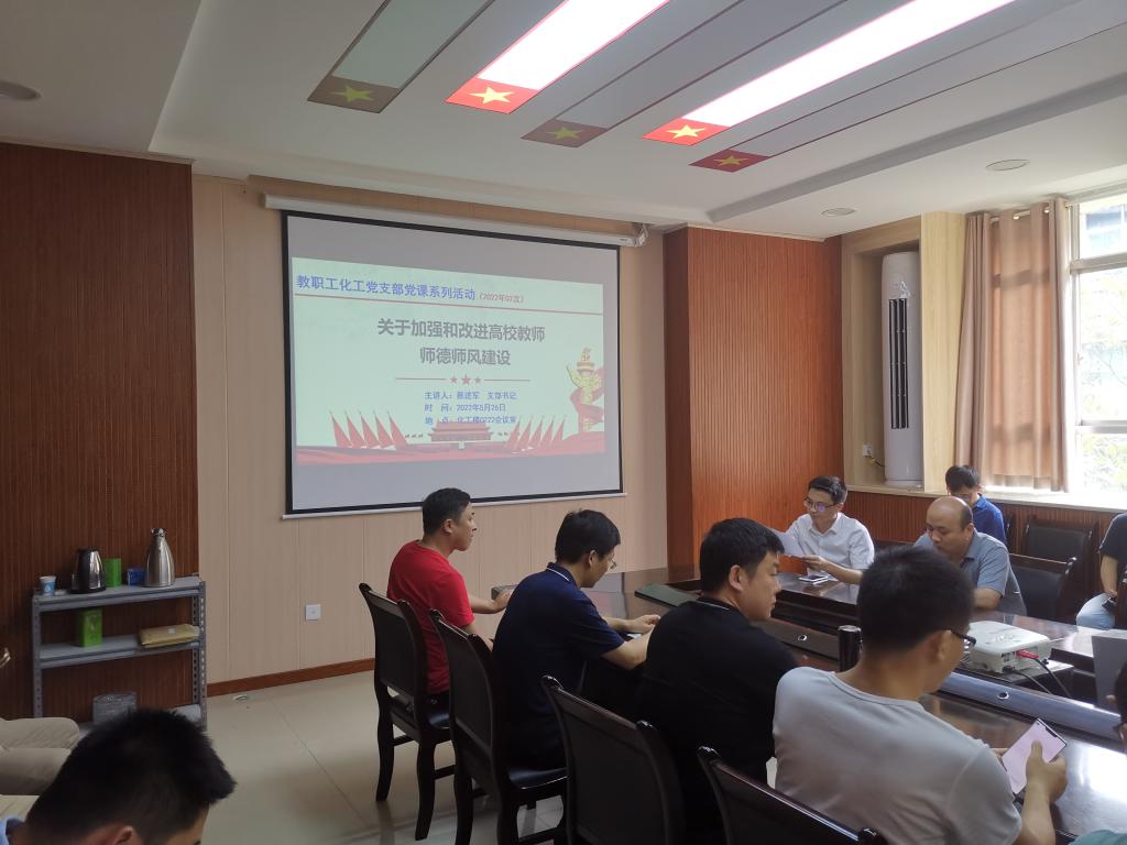 师德是教师的灵魂,是立教之本,兴教之源。为切实加强教师师德师风建设,提高教师师德水平和业务能力,526日,教职工化工党支部组织支部开展以关于加强和改进高校教师师德师风建设”为主题的专题教育学习活动,支部全体党员同志参加理论学习会。支部书记蔡进军同志主持会议。
