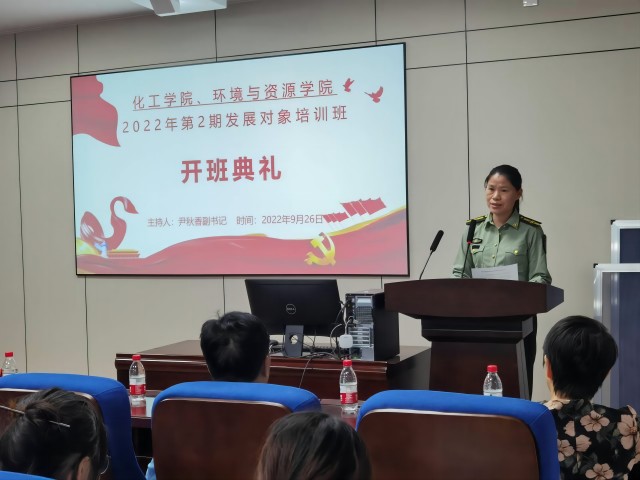 近日,化工学院、环境与资源学院2022年第2期发展对象培训班开班典礼暨《学习习近平生态文明思想 领悟碳达峰碳中和重要承诺》专题讲座在化工大楼A208举行。环境与资源学院党委书记虞文、环境与资源学院专职组织员王文春、化工学院专职组织员黄荣辉出席了会议,会议由化工学院党委副书记尹秋香主持。