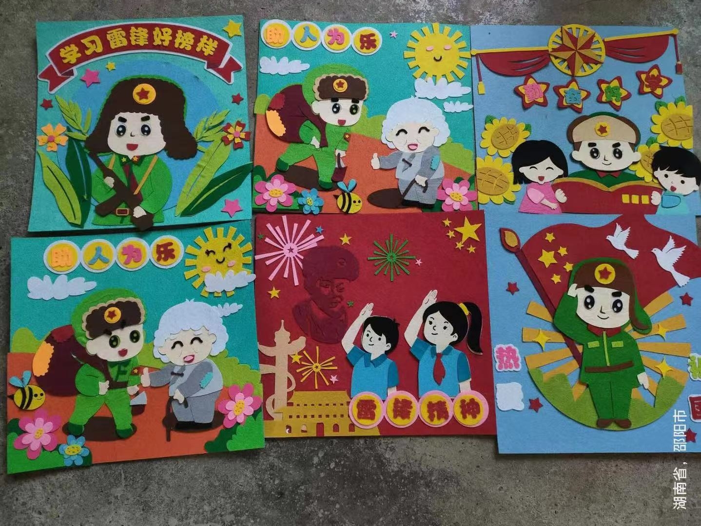 课堂上孩子们的欢笑声此起彼伏,大家沉浸于制作手工作品的快乐当中。小朋友们认真细致地完成手工作品,手法虽不精致但富有童趣。每一份手工作品凝聚了小朋友们的奇思妙想,通过完成雷锋模具涂色、雷锋场景画拼接、雷锋头像黏土捏造,激发小朋友对雷锋同志光荣事迹和志愿精神的思考,让雷锋精神在新时代永葆底色。