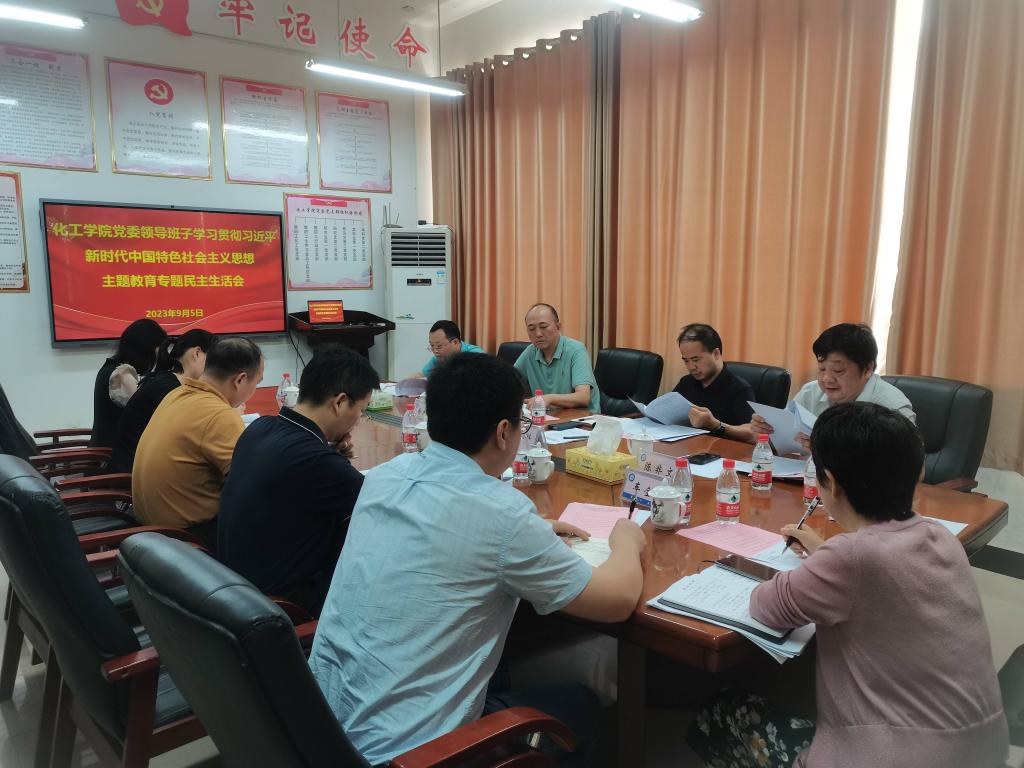 9月5日上午,化工学院党委领导班子在化工楼A-201召开学习贯彻习近平新时代中国特色社会主义思想主题教育专题民主生活会。校党委委员、副校长盛明科到会指导并点评,主题教育调查组组长、发规处处长易大东出席会议。会议由化工学院党委书记陈非文主持。