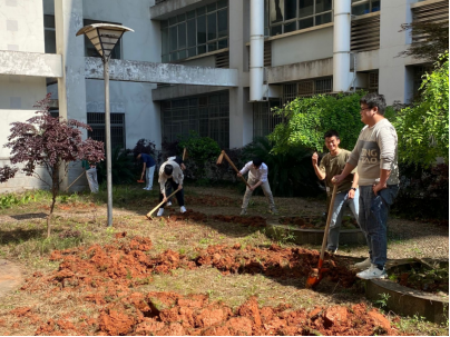 在化工系主任和班主任老师的带领下,天井花园“变装”义务劳动有序进行,分除草、移除杂树、垃圾清理、翻土等四个步骤,共计时长两天。学校校园环境服务中心的老师和工作人员为此次劳动提供了劳动工具和技术支持。同学们在专业工作人员的指导下戴起手套、抡着手锯、挥舞锄头,干得热火朝天。尽管汗水沾湿脸庞、衣服染上泥土,但大家热情不减,坚持把任务保质保量地完成好,在春天这个美好的季节将学院天井花园大变样,来年必是一番整齐美观、生机勃勃的景象。