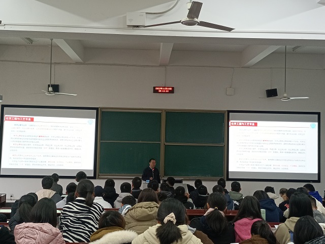 首先,游奎一院长从学院历史、师资力量、专业底蕴等方面对化学工程与工艺专业进行详细介绍,充分展现本专业在国内行业内的优势和特色,在专业自信上给学生打了一针强心剂。通过列举本专业多名优秀校友的真实案例激励同学们积极上进,同时介绍了本专业各位老师的研究方向与特色,期望同学们在新学期新环境中快速转换角色,争取大学四年取得自己满意的成绩。