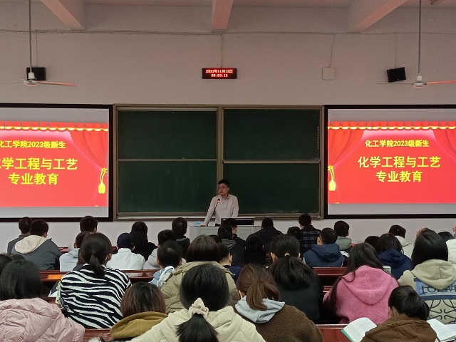2023年,化学工程与工艺专业迎来174名本科新生,其中化学工程与工艺(韶峰班)作为第二届拔尖人才培养班成功吸引省内外30名同学。为了帮助新生更快适应从高中向大学转变,了解专业发展情况,根据学院工作安排,化工系于11月12日上午在逸夫楼二阶室开展专业教育活动。化工学院院长游奎一教授、湖南师范大学尹笃林教授、长岭炼化岳阳工程设计有限公司伍俊文高级工程师、化工系副主任蔡进军、李正科、2023级化学工程与工艺工程专业班主任及养成辅导员参加本次讲座。本次活动由蔡进军副教授主持。