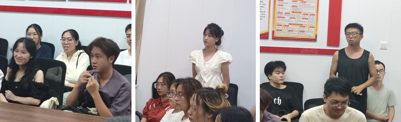 在互动环节,参会老师鼓励同学们说出心中所思所想,这样才能更好地为同学们做好服务工作,同学在老师鼓励下也纷纷发言。其中,2023级荆开春、开宇珊等同学提出了自己在学习过程中到的一些疑问,主要包括合班教学、任课教师分配、授课难易程度差异化、实践教学和平时期评成绩计分等问题。针对这些问题,四位老师耐心解答,为同学们提供切实可行的建议。老师们表示学院会根据同学们的反馈情况不断完善课程设置、扎实推进任课教师集中备课制度,进一步提高教学质量。四位老师也鼓励同学们主动学习,努力做好当下每一件事,充分利用学院提供的资源提升自己的专业素养和综合能力。