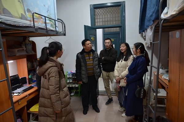为了迎接新学期,确保学生们安全的按时到校开展学习生活。201933日晚7时,化工学院党委副书记周春初,团委书记刘宇谦,学工办老师夏妮、邹潇,辅导员代表及第十八届团委学生会部分成员一同下寝看望2015-2018级学生,了解化工学子返校情况及假期生活有无特殊状况。