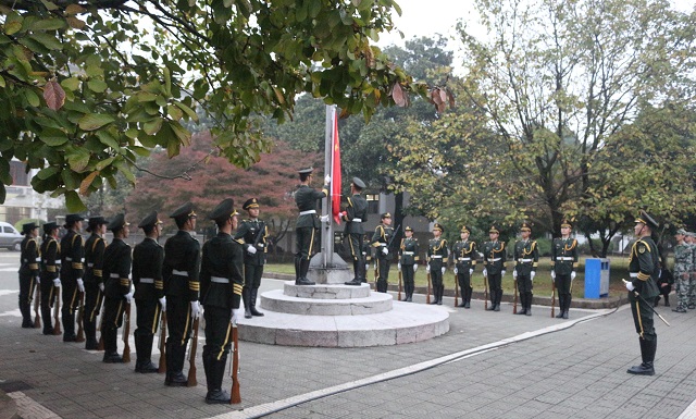 1113日清晨,庄严而隆重的升旗仪式于第一教学楼前坪举行。参加仪式的领导及老师有化工学院党委副书记周春初、化工学院组织干事黄益荣、团委书记刘宇谦。化工学院第十八届团委学生会全体成员及党支部成员也参加了升旗仪式。