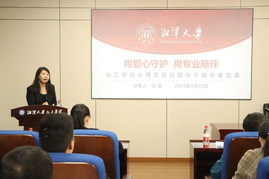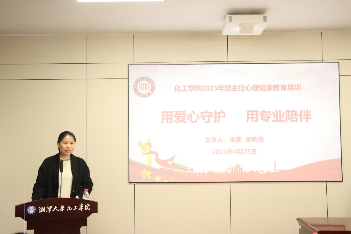 4月25日下午,化工学院于化学化工大楼A208开展班主任心理健康教育专题培训,培训由湘潭大学心理健康与咨询中心专职教师伍艳副教授授课,化工学院全体班主任、辅导员参加,副书记尹秋香主持。