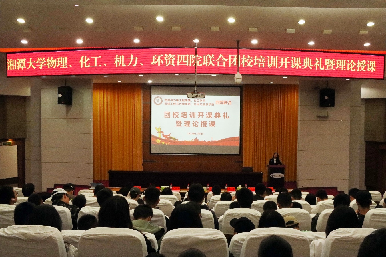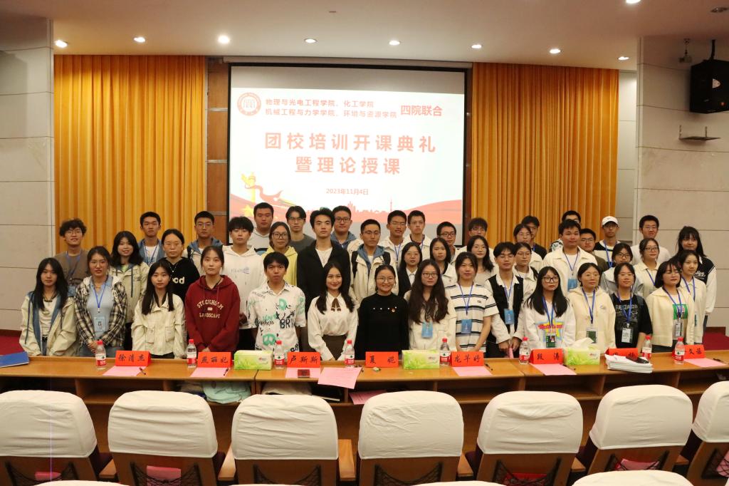 近日,物理与光电工程学院、化工学院、机械工程与力学学院和环境与资源学院在逸夫楼第一报告厅隆重举办2023年秋季四院联合团校培训开课典礼暨理论授课。出席本次会议的有化工学院团委书记夏妮、各学院主席团成员和392名学员并特邀马克思主义学院硕士研究生余文茜进行理论授课,化工学院团委组织部部长胡珉玥主持大会。