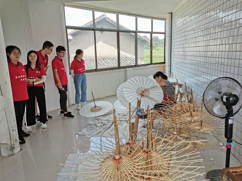 一把油纸伞成为了诗意的标配,湘潭县石鼓镇的油纸伞作为省级非物质文化遗产,已有600多年的历史,这里生产的油纸伞不仅撑起了江南的翩翩诗意,如今更打造成了一个两千多万的大产业。石鼓油纸(布)伞制作工艺于2016年入选第四批省级非物质文化遗产保护名录。下午,调研团拜访了制伞技艺(石鼓油纸(布)伞制作工艺)第五代传人、宇昌工艺伞有限公司总经理周汉宇先生,在研学中,周总谈到“别人做的或许是工艺品,而我做的是艺术品。只有把文化当作底蕴而不是工具时,才能在竞争激烈的产业中站稳脚跟。”