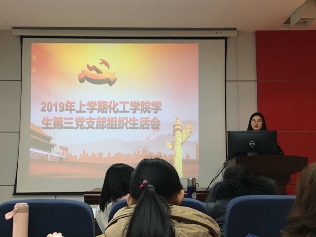 2019年3月9日下午,化工学院学生第三党支部全体党员在化工大楼A208举行组织生活会。此次会议由预备党员肖洁主持,在宣布完会议纪律后,本次会议正式开始。首先,在观看了湖南媒体对我校于2018年9月10日开展60周年校庆的报道以及习近平总书记对我校的重要批示之后,我们不禁萌生出作为一名“湘大人”的骄傲与自豪,同时,还切实感受到了党中央对我校的深深挂念与殷切期望。接着主持人肖洁问到:“在校庆时,大家印象最深的地方在哪里?”在座的党员们谈到了校庆纪念品、广东路……大家都觉得:湘大越来越美了,越来越强大了。