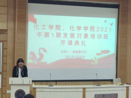 此次开班典礼由化学学院党委副书记肖妮主持。她首先对参加本次培训班的学员表示热烈欢迎,并对学员们的发展和成长寄予厚望,希望各位学员能够学习到共产党人艰苦奋斗的精神、敢为人先的品质。希望学员们珍惜培训机会,遵守培训纪律,认真学习实践。