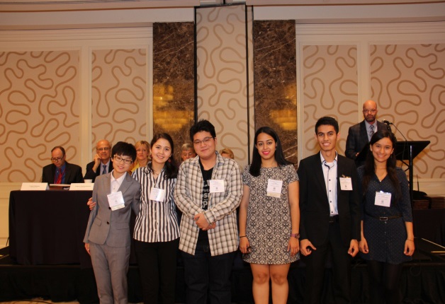 图4  2016年11月化工学院14级化学工程与工艺专业学生徐艳(左起第一位)赴美国参加AIChE秋季年会(全球共遴选8位本科生)。