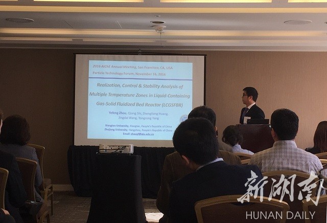 新湖南客户端12月1日讯 (记者 曹辉 通讯员 刘宇谦 张灿强)近日,2016年美国化学工程师学会(AIChE)年会在美国旧金山举行。英国365集团公司教师周业丰博士受邀参加会议并作分会场主题报告,本科生徐艳作学生分会交流。