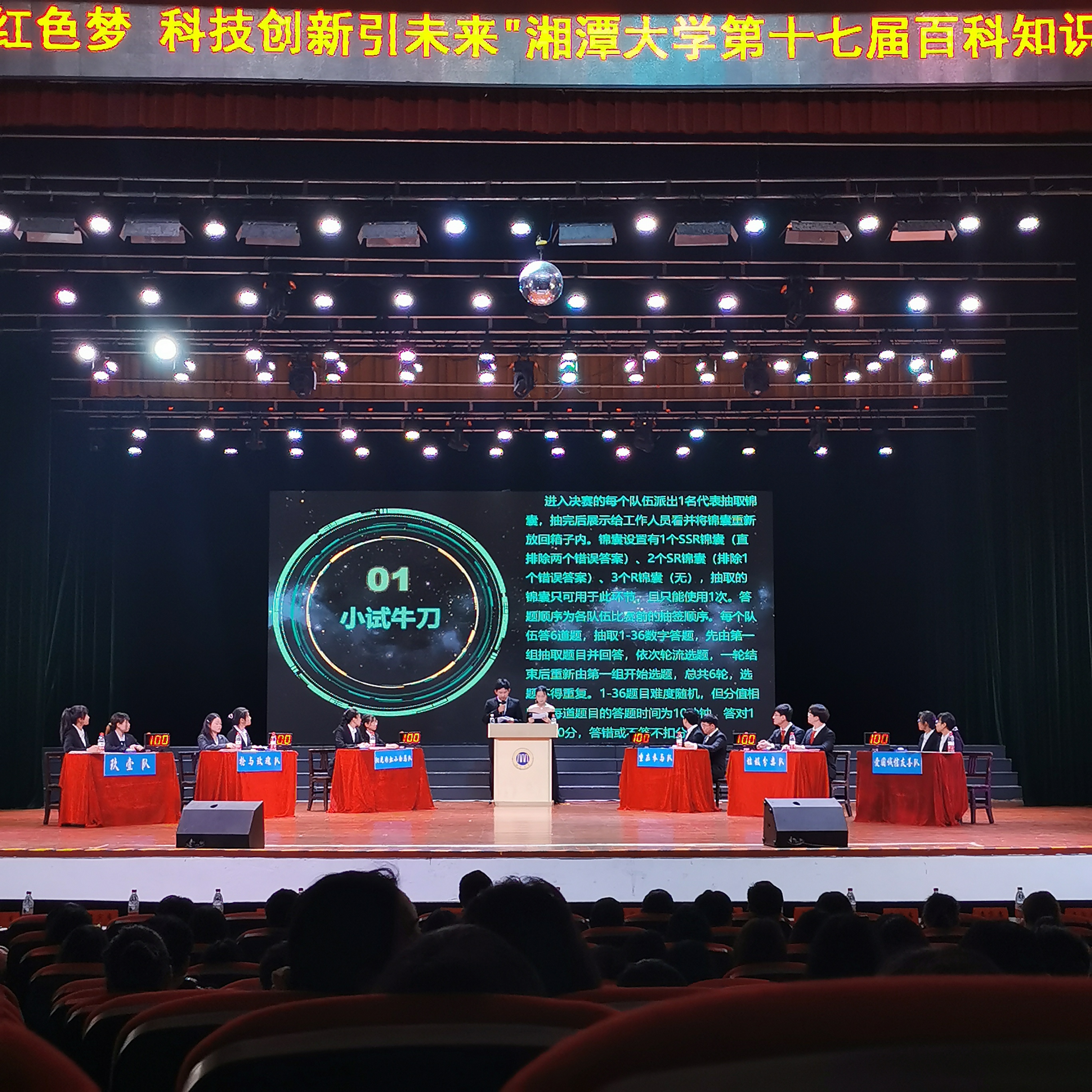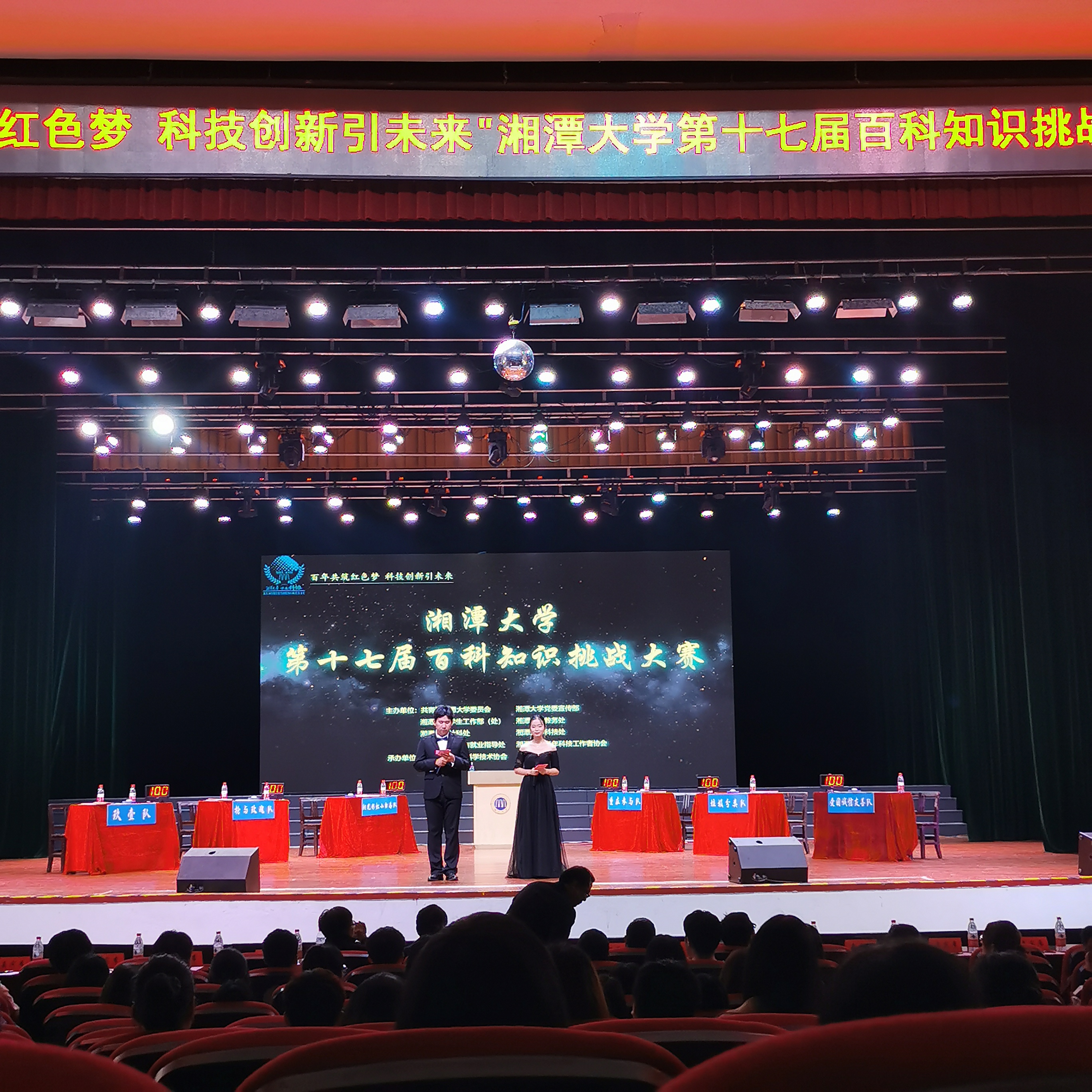 5月22日晚,“百年共筑红色梦,科技创新引未来”湘潭大学第十七届百科知识挑战大赛于湘潭大学俱乐部隆重举行。莅临活动现场的嘉宾有湘潭大学副校长刘建平、共青团湘潭大学委员会书记张月朗、化工学院党委副书记周春初,同时还有众多湘大师生以及科技爱好者前来观看比赛,全场座无虚席。