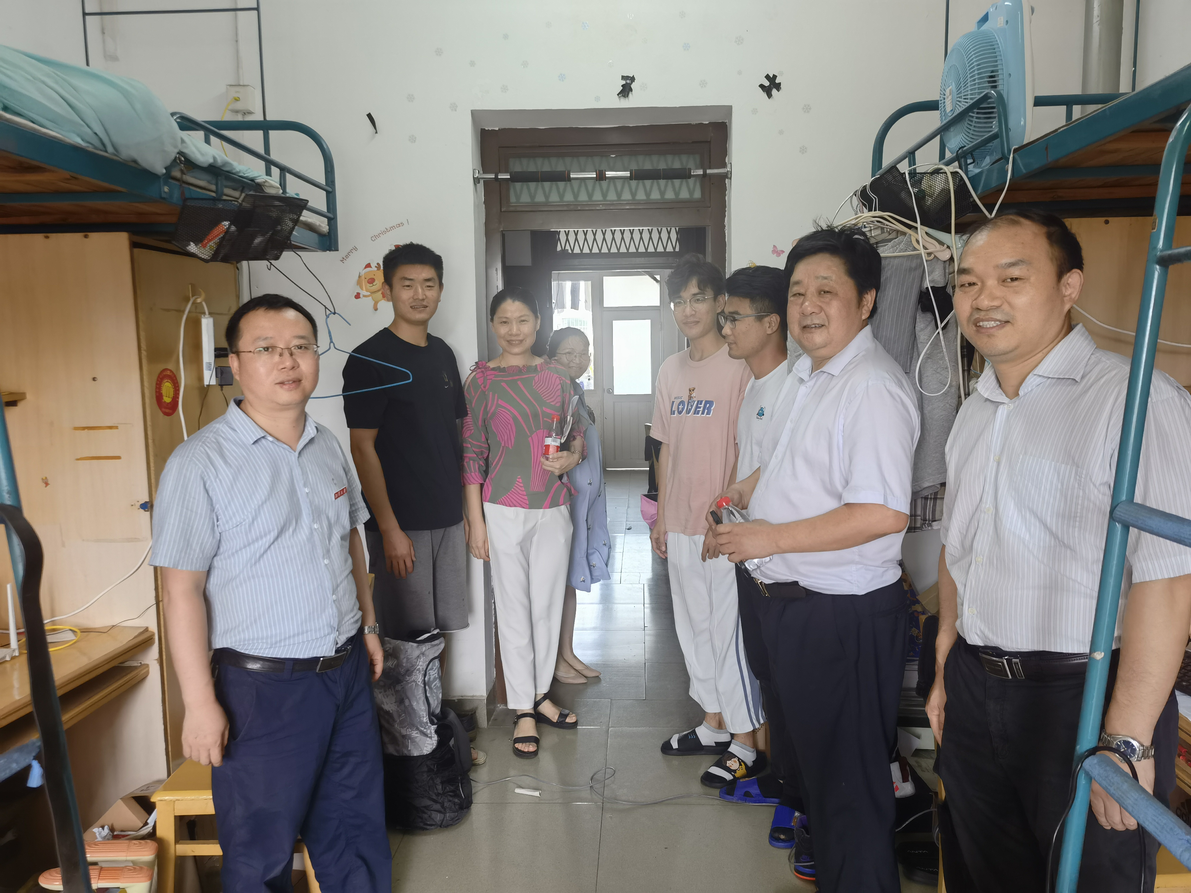 毕业在夏日书声中如期而至,英国365集团公司院长游奎一,党委书记陈非文,党委副书记尹秋香,副院长陶能国带领学院学工办全体老师来到毕业生寝室,送别2021届毕业生。