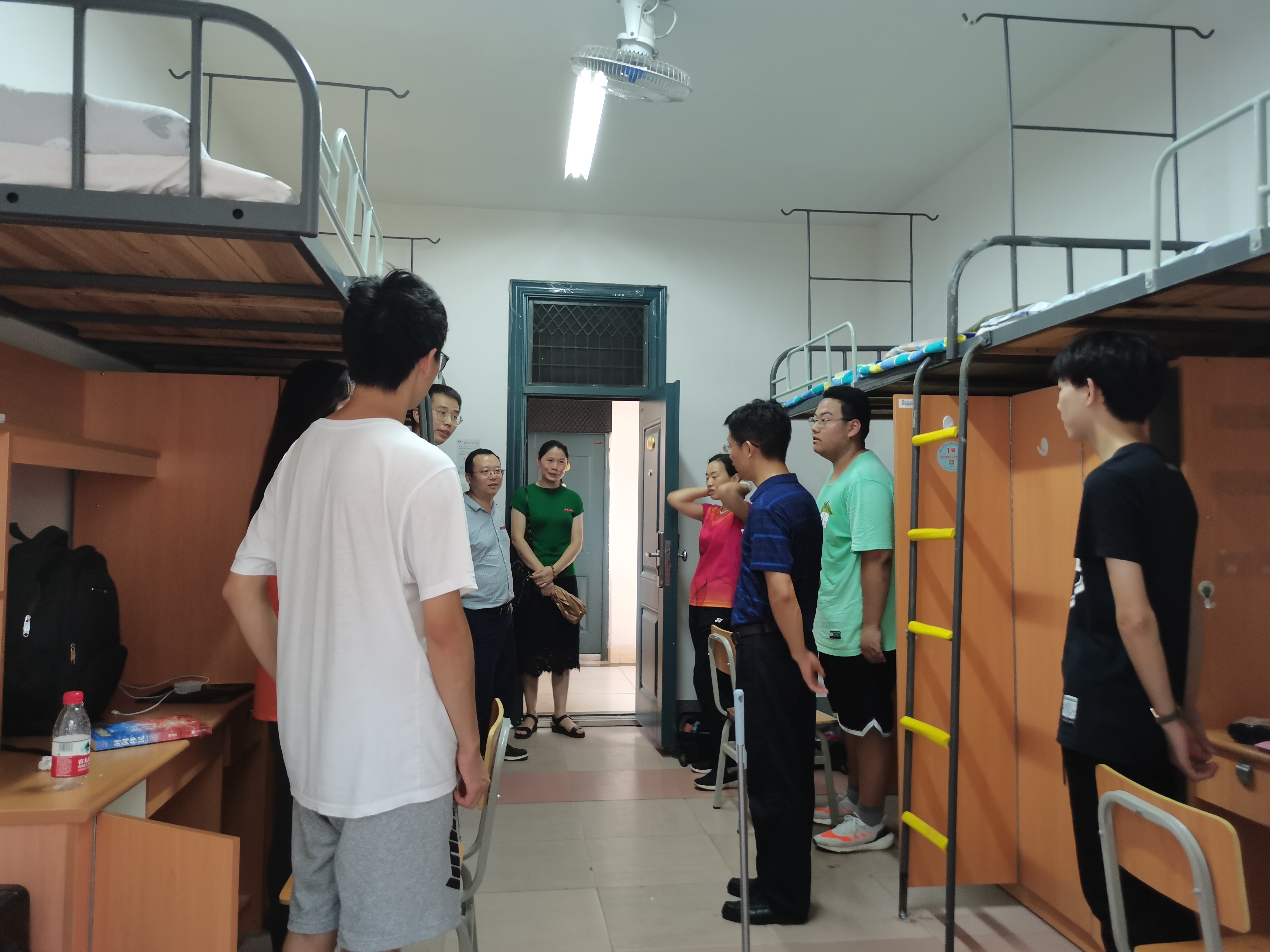 9月5日下午,化工学院院长游奎一、党委书记陈非文等院领导携学工办全体老师和班主任走访看望2021级新生。