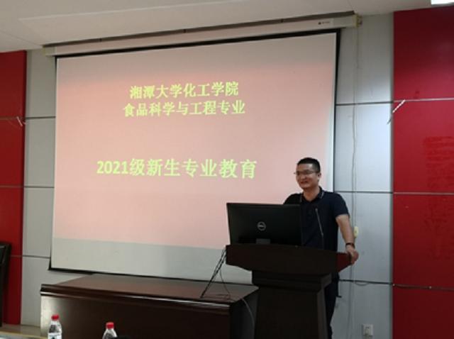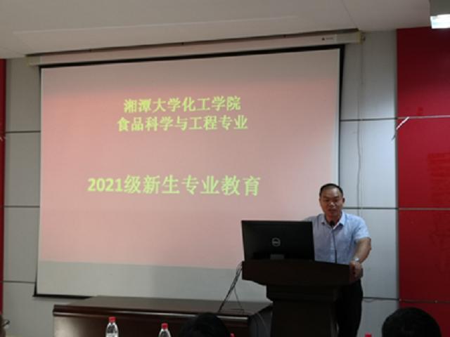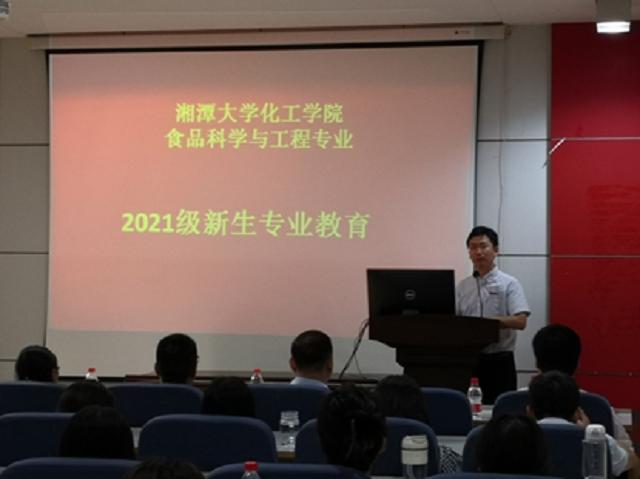为加深2021级新进本科生对食品科学与工程专业的了解,提升学生的专业归属感和追求感,让新生更快地适应大学生活,更好地开展专业学习,根据学院指示,生物与食品工程系于9月9日上午在化工楼A208会议室开展专业教育活动。专业教育活动由系主任车金鑫主持,并邀请杰出校友代表丰红辉董事长、化工学院陶能国副院长、易争明副院长、及部分老师参加了本次活动。