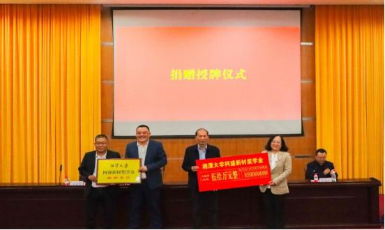 近年来,柯盛新材与湘潭大学的校企合作不断深化。今年7月,公司与化工学院刘平乐教授团队签订3000万技术成果转化项目合同;此次在化工学院设立奖学金,惠及化工学院、化学学院学子,旨在进一步深化合作,回馈学校人才培养,实现校企互利共赢。