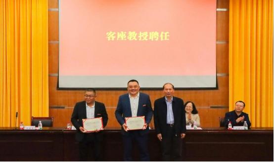 随后,在会场热烈的掌声中,柯盛新材柳雄策董事长、郑保昌副总经理为学校现场捐赠“柯盛新材奖学金”50万元,校长李伯超教授、副校长葛飞教授共同为柯盛新材颁发了“柯盛新材奖学金”捐赠牌匾。同时,为进一步充分利用校企合作优势,提升人才培养质量,学校还聘请柯盛新材柳雄策董事长、郑保昌副总经理为湘潭大学客座教授,李伯超校长现场颁发了聘书。